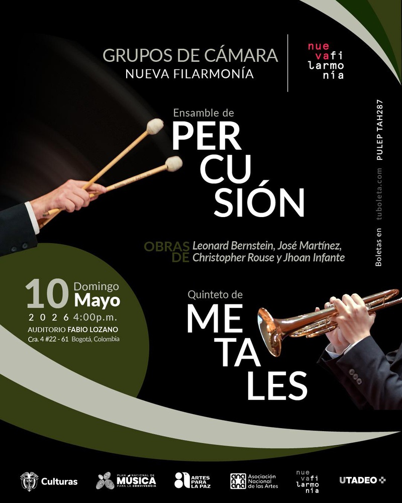 Como parte de su proyecto artístico, la Nueva Filarmonía impulsa actualmente el desarrollo de sus grupos de cámara, integrados por músicos de la orquesta en formatos como el ensamble de percusión, quinteto de metales y el cuarteto de cuerdas, que permiten explorar repertorios y formatos más íntimos, ampliando su alcance artístico y fortaleciendo su versatilidad interpretativa.Repertorio: